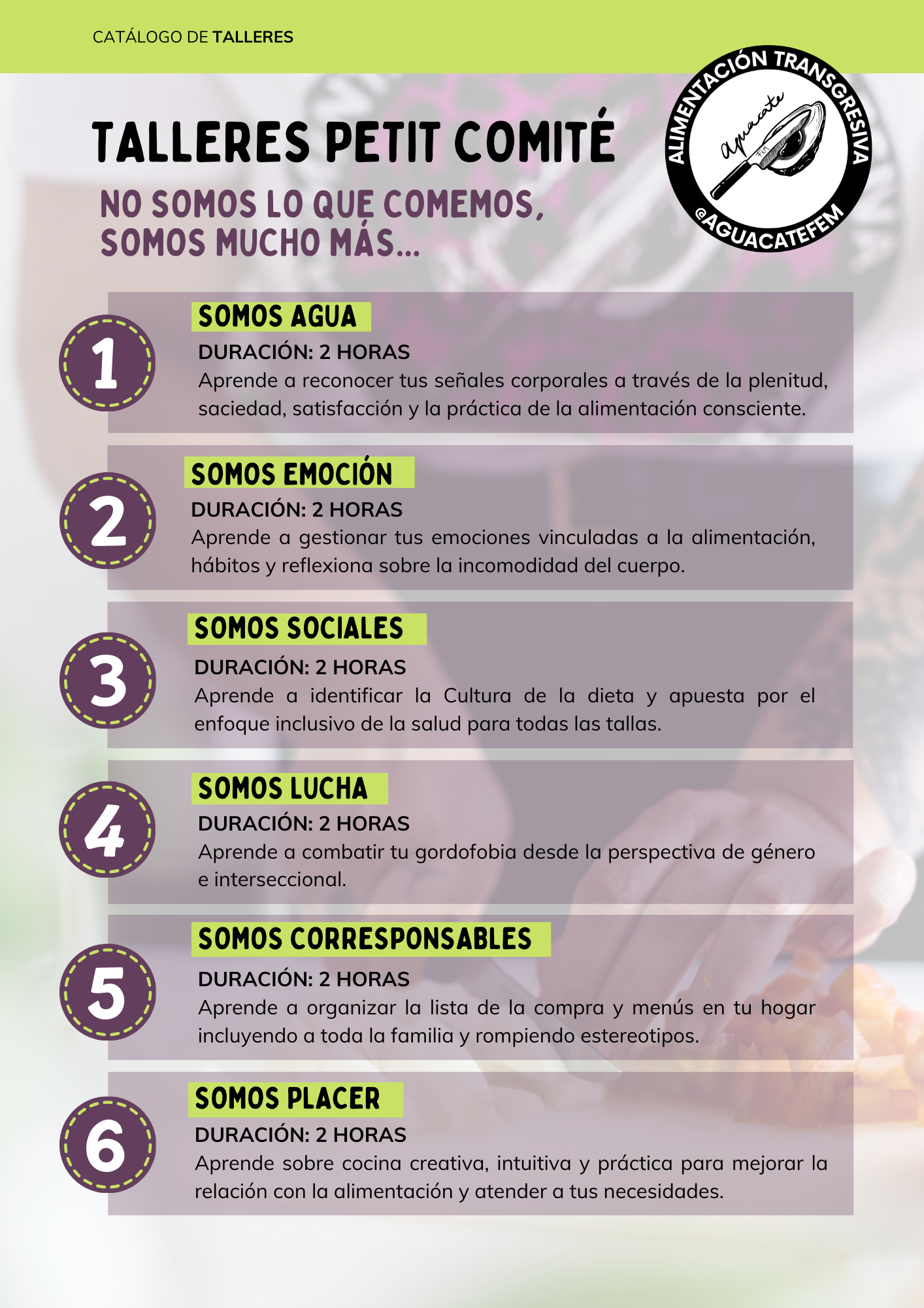 RESERVA TALLERES: escríbeme al correo electrónico aguacatefem@gmail.com